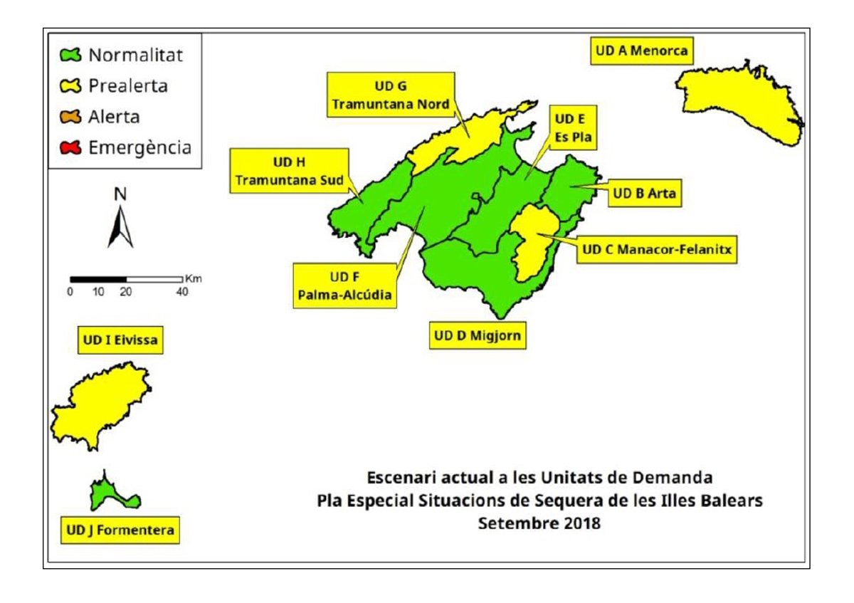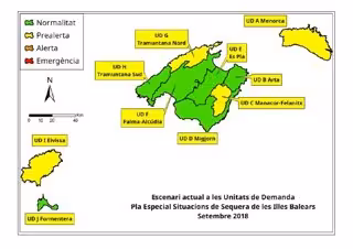 Cuatro unidades de demanda están en prealerta: las unidades de Manacor-Felanitx y la de Ibiza, que se mantienen, y se añaden las de Menorca y Tramuntana y Norte -con un índice por debajo del umbral de 0,5 por tercer mes-.