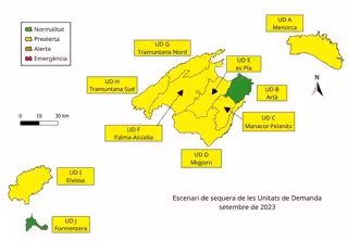 Mapa del escenario de sequía de las Unidades de Demanda de Baleares en septiembre de 2023 - CAIB