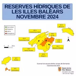 Mapa de la situación de las reservas hídricas de Baleares en el mes de noviembre de 2024 - CAIB
