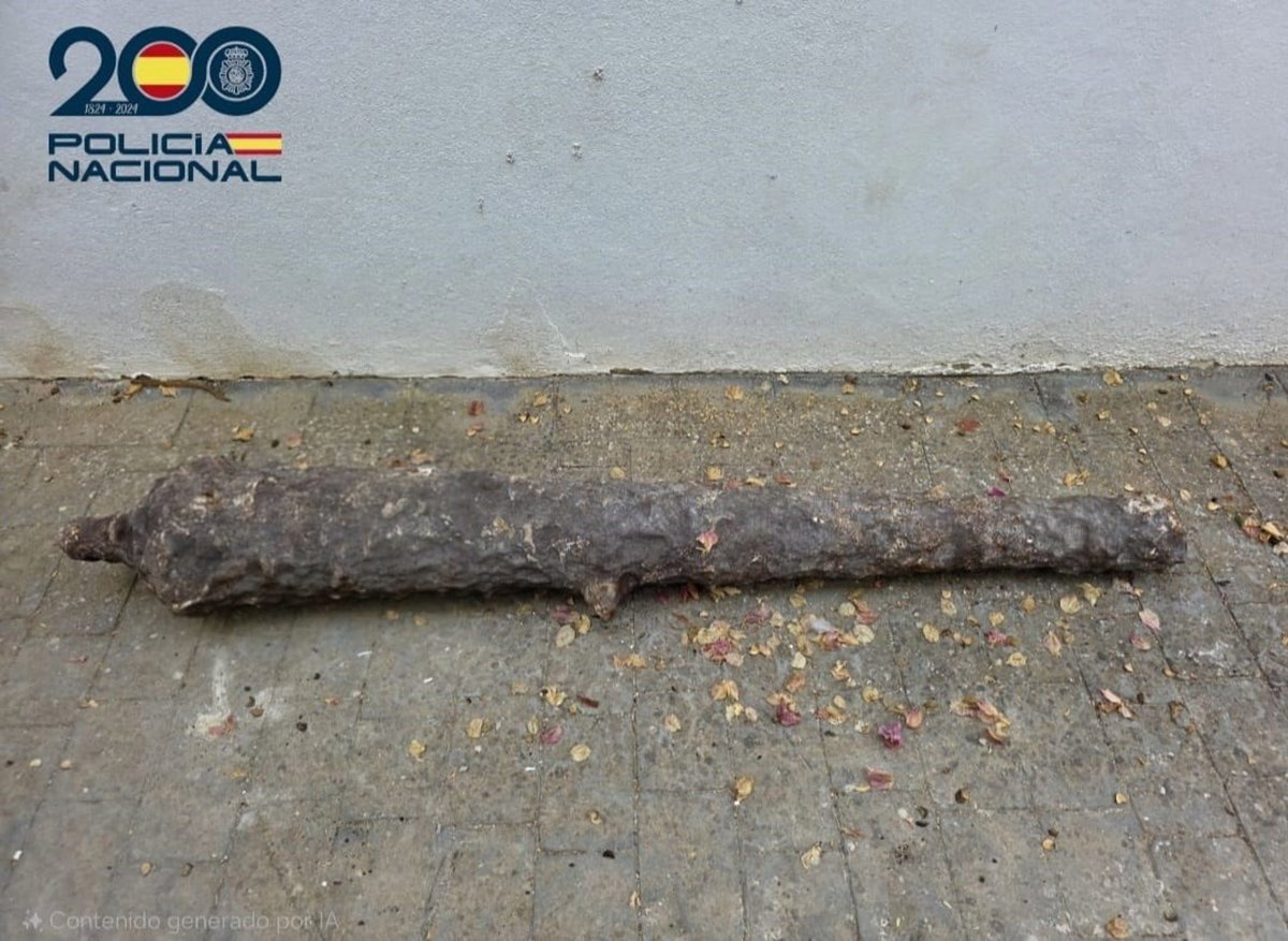 Agentes de la unidad NRBQ-Tedax intervinieron en este jueves este cañón típico de los navíos antiguos de casi 2 metros de longitud, según ha informado el cuerpo policial en un comunicado.