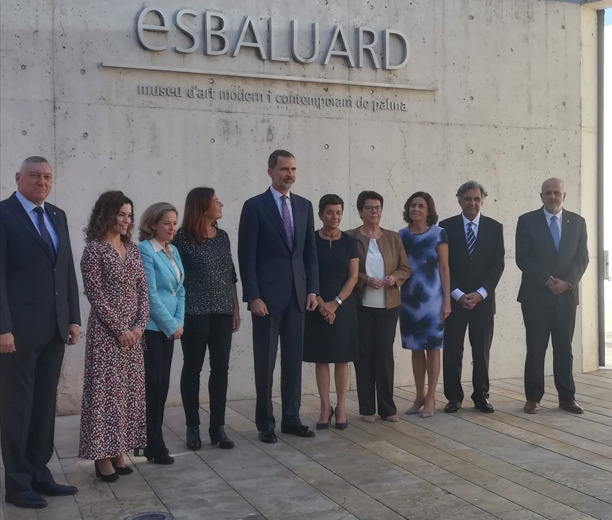 El Rey ha llegado al museo de arte moderno contemporáneo hacia las 13.45 horas en coche oficial. Ha sido recibido por la ministra de Economía y Empresa, Nadia Calviño; la presidenta del Govern, Francina Armengol; la delegada del Gobierno, Rosario Sánchez; el presidente del Consell de Mallorca, Miquel Ensenyat; el comandante jefe de Baleares, Juan Cifuentes; y la presidenta del Grup Serra, Carmen Serra.