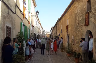 Alrededor de las 19.15 horas, los Reyes han llegado a Petra y han recorrido a pie la calle que llevaba a la casa natal y el museo de Fra Juníper Serra. Durante la caminata, han saludado a los vecinos de las calles colindantes, quienes se han interesado por la infanta Sofía que ha realizado el recorrido con una muleta y apoyada en la mano de su hermana, la princesa Leonor, ya que este domingo sufrió un accidente en la rodilla por el que ha recibido cinco puntos.