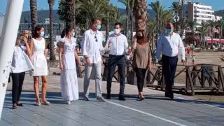 Los Reyes de España, Felipe VI y Letizia, han llegado a las 18.11 horas al municipio ibicenco de Sant Antoni de Portmany, empezando su visita por el paseo marítimo donde han sido recibidos por un centenar de vecinos que han gritado 'viva el rey'.