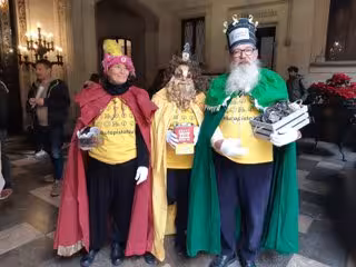 Los Reyes Magos lucían las camisetas amarillas de la plataforma con el lema #AutopistaNo e iban acompañados de un "séquito real" formado por otros miembros de la entidad.