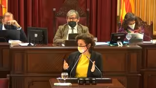 La consellera de Asuntos Sociales y Deportes, Fina Santiago, durante el debate de los Presupuestos autonómicos para 2022. - PARLAMENT IB