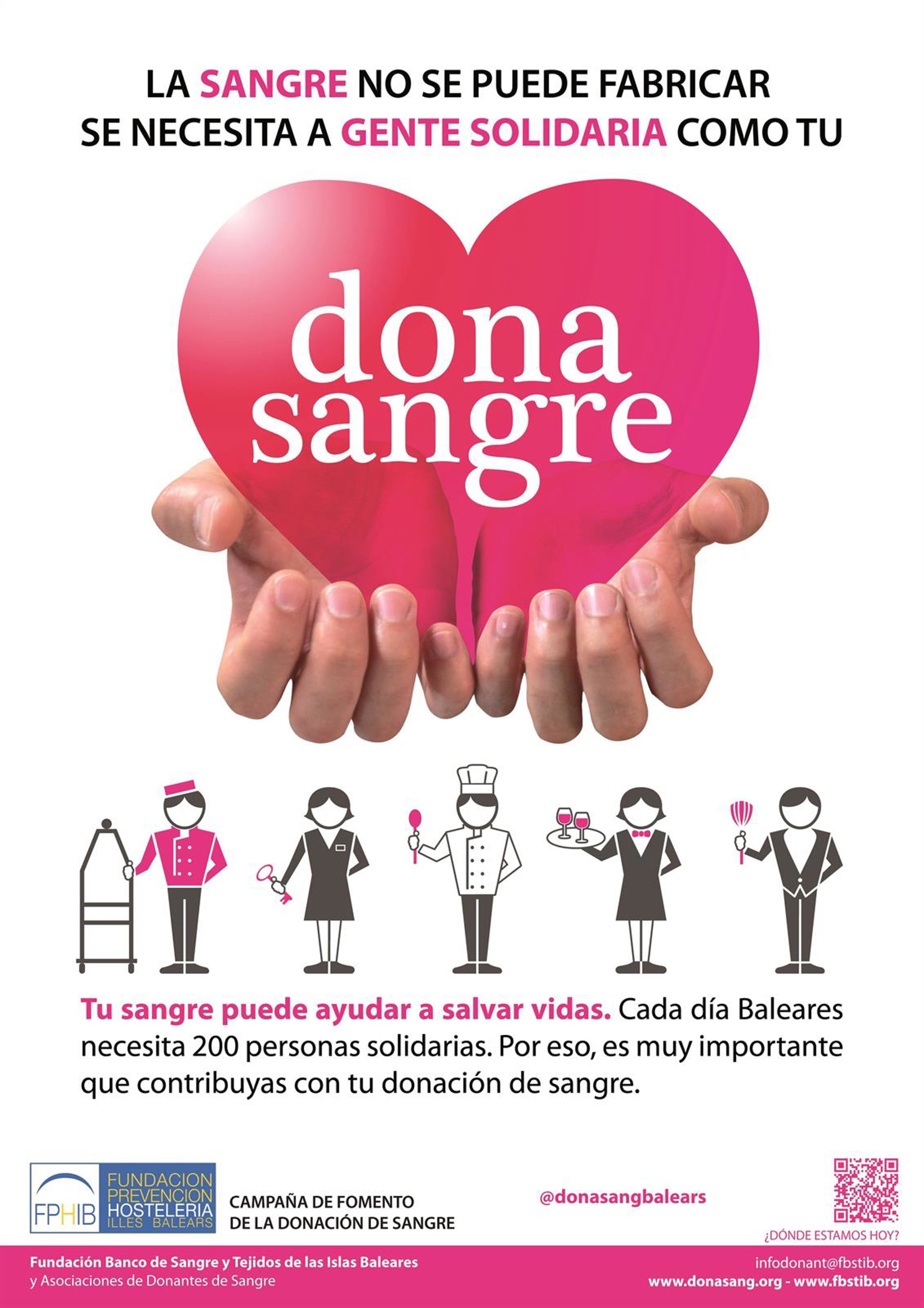 La Fundación Prevención Hostelería Islas Baleares (FPHIB) www.fphib.es y la Fundación Banco de Sangre y Tejidos de las Islas Baleares (FBSTIB) www.fbstib.org presentan una campaña conjunta con el fin de concienciar a los empleados del sector de Hosteleria (hoteles, restaurantes, salas de fiesta, discotecas, sindicatos) de la Comunidad de la necesidad de su implicación.