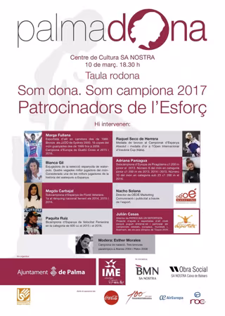 Seis mujeres deportistas profesionales participarán esta tarde en la mesa redonda 'Som Dona, Som Campiona 2017 - Patrocinadors de l'esforç' en el marco del programa Palmadona del Ayuntamiento de Palma.
