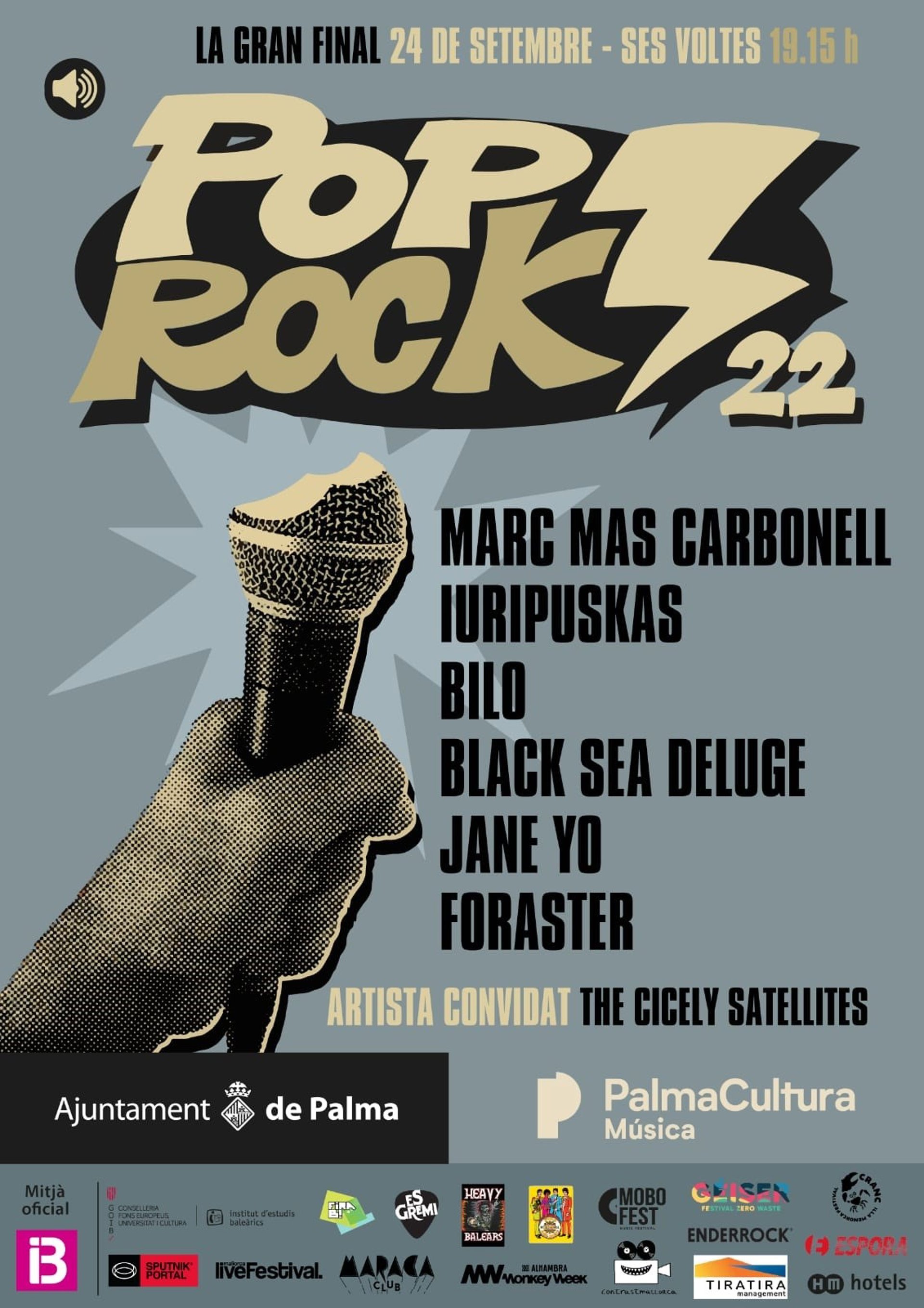 Este próximo sábado tendrá lugar la final del certamen PopRock 22, organizado por la Concejalía de Cultura del Ayuntamiento de Palma, en la que los seis finalistas presentarán sus propuestas en directo en Ses Voltes.