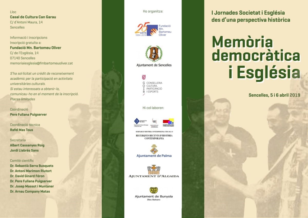 La Conselleria de Cultura, Participación y Deportes ha organizado las 'I Jornadas Sociedad e Iglesia desde una perspectiva histórica' dedicadas al estudio de la relación entre la Iglesia y la memoria democrática que se celebrarán el próximo viernes y sábado, 5 y 6 de abril, en Casal de Cultura Ca'n Garau de Sencelles.
