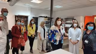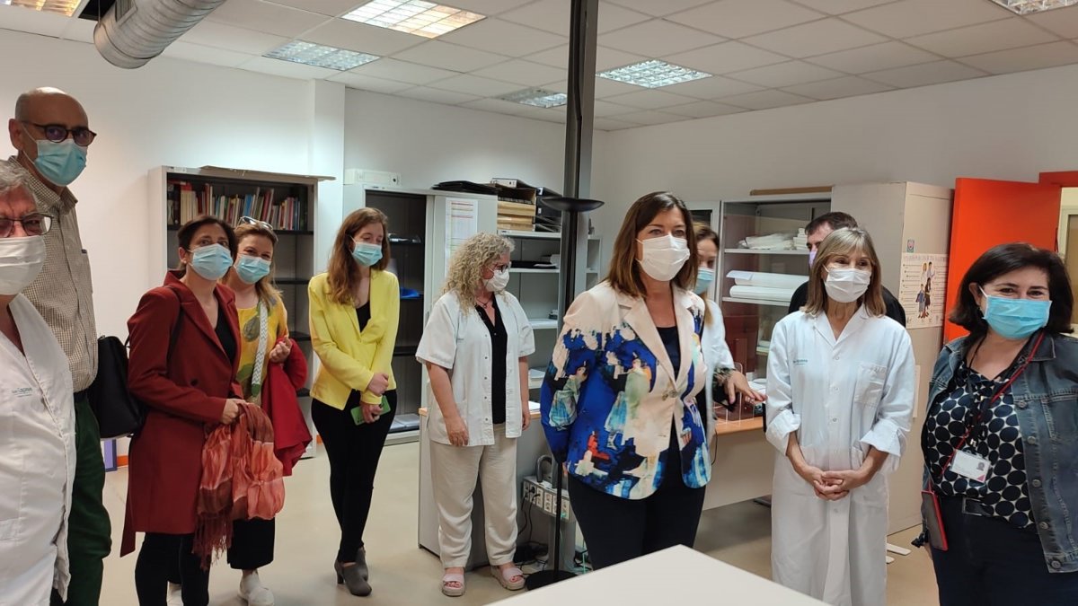 La consellera de Salud y Consumo, Patricia Gómez, acompañada del director general del Servicio de Salud, Manuel Palomino; la subdirectora de Gestión de Personal, Piedad Durán, y la coordinadora del Servicio de Prevención de Riesgos Laborales, Isabel Miralles, han visitado este martes las oficinas centrales de este servicio, ubicadas en el recinto del Hospital Universitario Son Espases.
