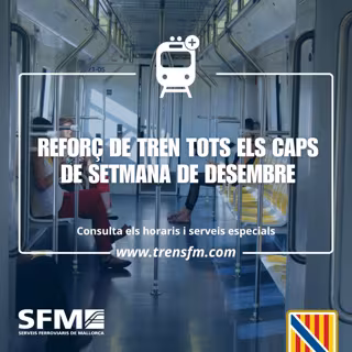 Serveis Ferroviaris de Mallorca (SFM) ha programado trenes especiales de refuerzo durante todos los fines de semana del mes de diciembre, así como para el primero del mes de enero de 2025, que coincide con la celebración de la Cabalgata de Reyes.