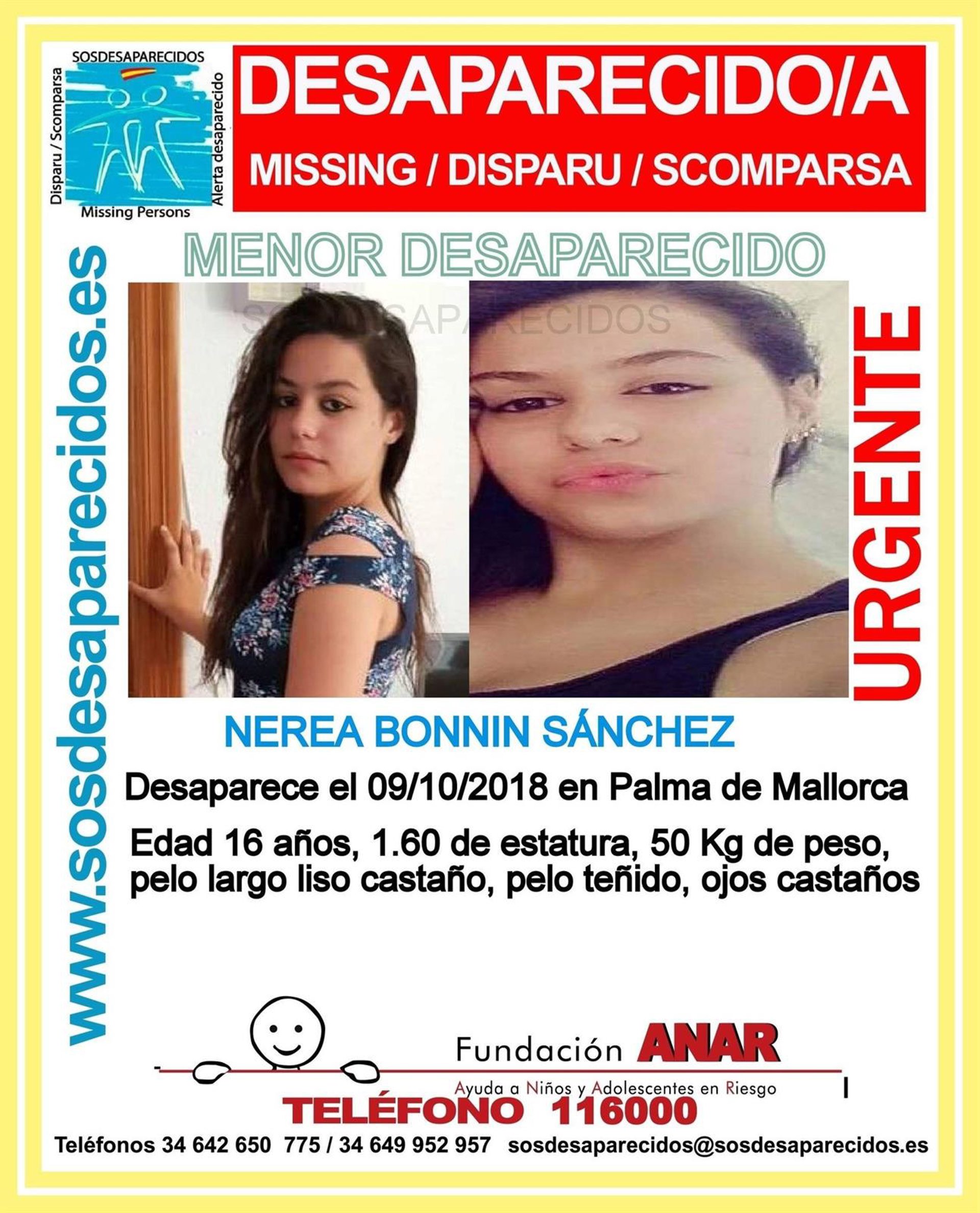 La chica, que responde al nombre de Nerea Bonnín Sánchez, mide alrededor de 1.60 centímetros, lleva el pelo teñido y tiene ojos castaños.