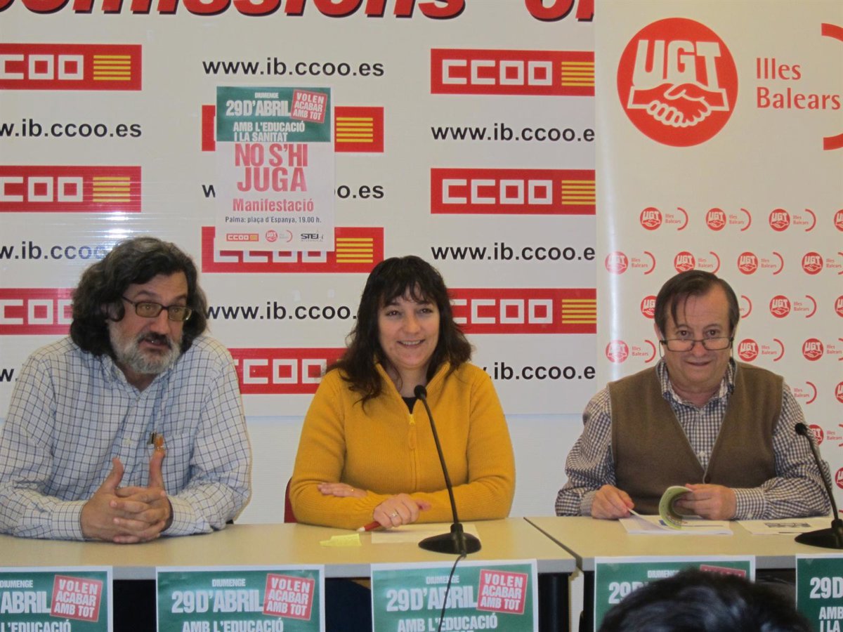 Los sindicatos de Baleares, CCOO, UGT y STEI-i, han animado a la ciudadanía a que participen en la manifestación que han convocado para este domingo en Palma, en protesta por los recortes aprobados por el Gobierno central, que afectan especialmente a los sectores de la educación y la sanidad.