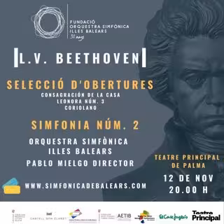 La Sinfónica de Baleares, dirigida por su director titular, Pablo Mielgo, interpretará un concierto extraordinario de Beethoven, que incluirá 'Sinfonía núm. 2' y algunas de las aperturas más conocidas del músico, este jueves a las 20.00 horas en el Teatre Principal de Palma.