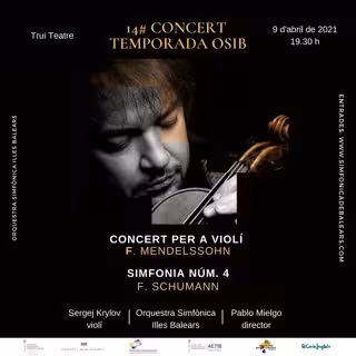 La Orquesta Sinfónica de Baleares y el violinista Sergej Krylov interpretarán este viernes el concierto para violín de Mendelssohn, un evento que tendrá lugar a las 19.30 horas en el Trui Teatre.