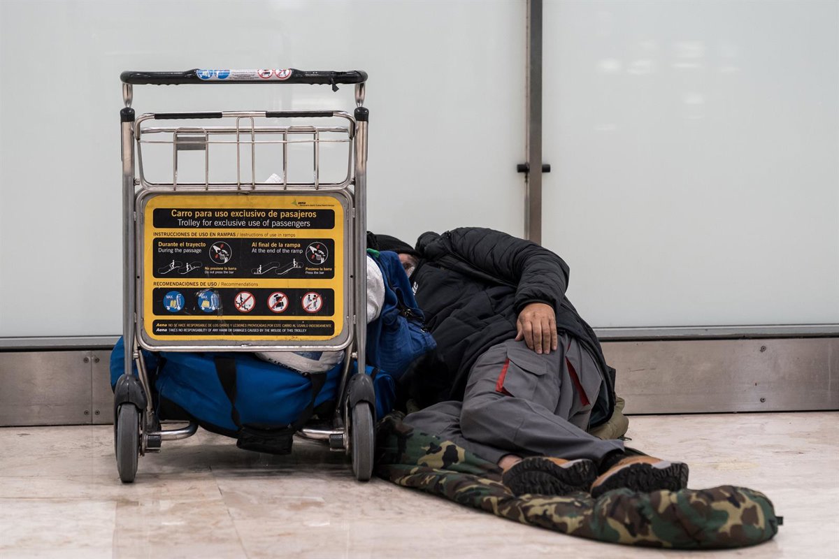 Archivo - Una persona sin hogar en un aeropuerto. - Diego Radamés - Europa Press - Archivo