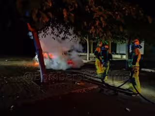 Los Bomberos de Palma se han movilizado esta madrugada para sofocar las llamas de un vehículo incendiado en el aparcamiento del Polideportivo Son Hugo.