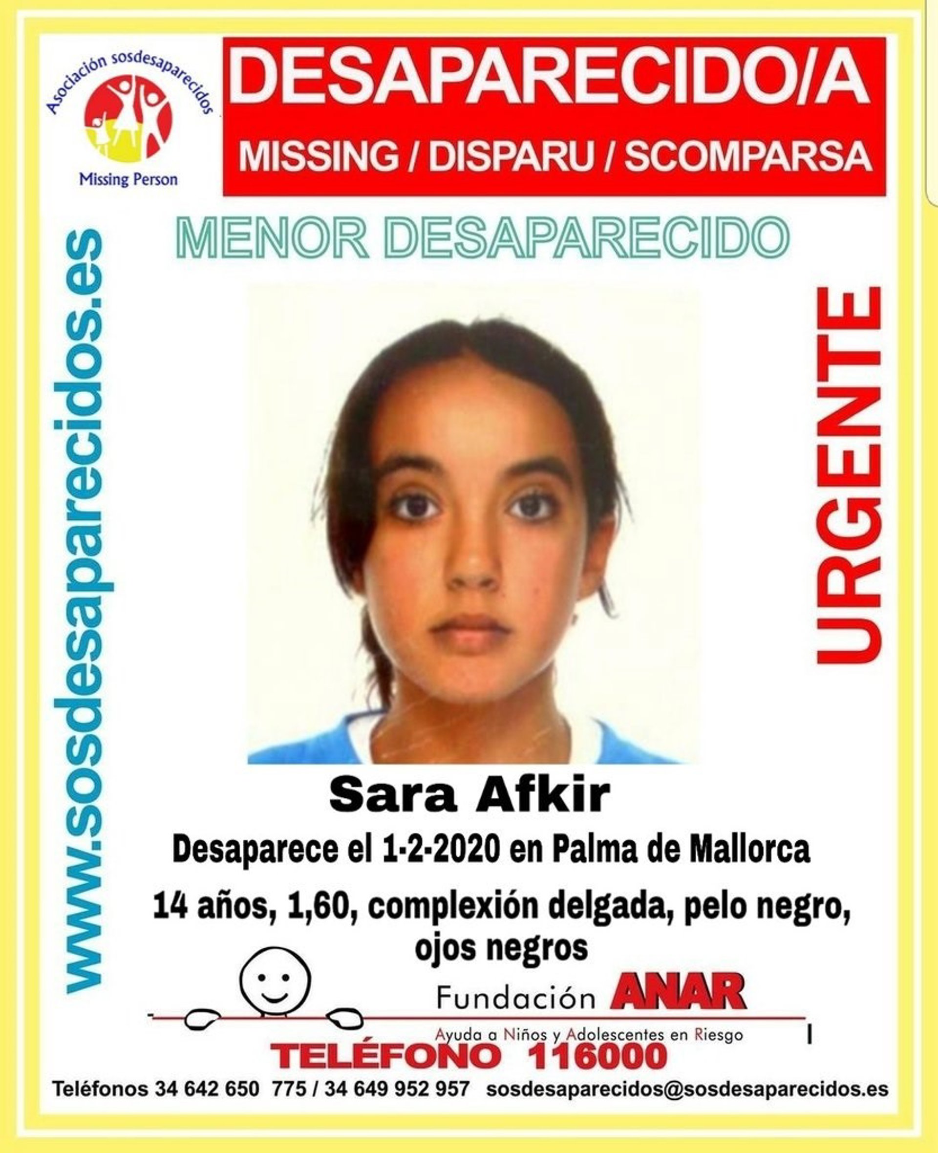 La Asociación Sosdesaparecidos ha solicitado este lunes colaboración para localizar a una menor de 14 años desaparecida desde el sábado en Palma.