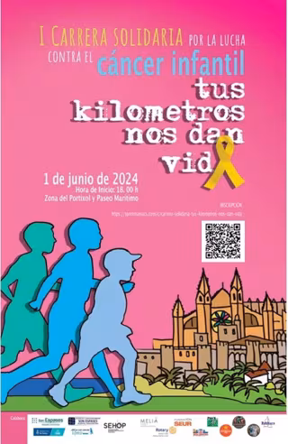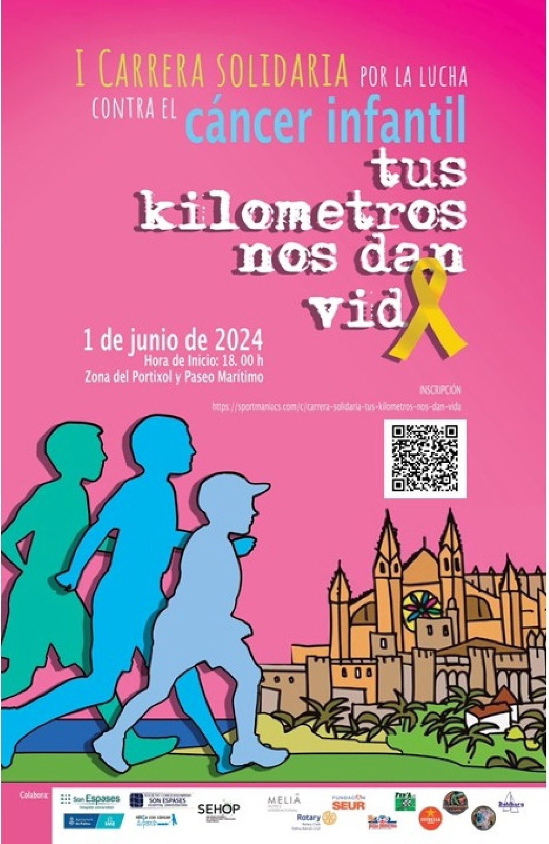 El Hospital Son Espases organiza una carrera solidaria por la Lucha Contra el Cáncer Infantil, el sábado 1 de junio en el Portitxol, con el lema 'Tus kilómetros nos dan vida'.