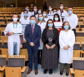 En el acto de entrega han participado la consellera de Salud, Manuela García; el director general del Servicio de Salud, Javier Ureña; la directora gerente de Son Espases, Cristina Granados; la directora científica de la Fundación Instituto de Investigación Sanitaria Illes Balears (IdISBa), Antonia Barceló; el presidente de la Comisión de Investigación, Antonio Oliver, y el coordinador de la Unidad de Investigación, Borja García-Cosío.