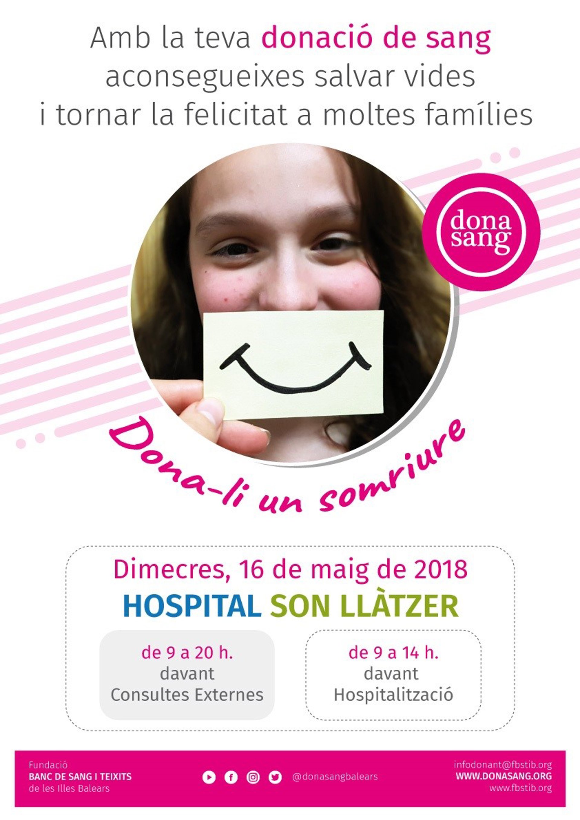 El Hospital Son Llàtzer acogerá el próximo 16 de mayo una campaña intensiva de donación de sangre de 11 horas, bajo el lema 'Regala una sonrisa', con el objetivo de conseguir más de un centenar de donaciones.