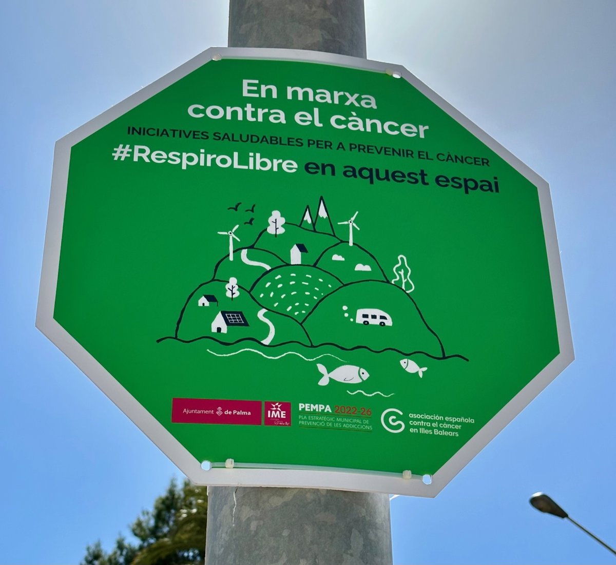 Señal procedente de la campaña de prevención 'Espacios Libres de Humo' de la Asociación Española Contra el Cáncer y el Ayuntamiento de Palma - AYUNTAMIENTO DE PALMA