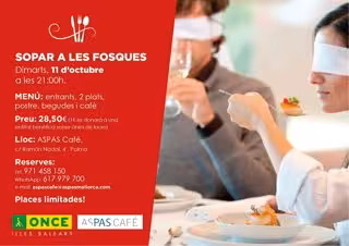 El acto ha sido organizado por Once y Aspas Café y, además de vivir una experiencia gastronómica y sensorial única, se pretende sensibilizar y tomar conciencia sobre cómo se siente una persona ciega y con qué dificultades se encuentra en una actividad tan cotidiana como es comer.