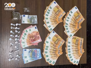 En el cacheo se encontraron en uno de los bolsillos del pantalón dos papelinas de plástico termoselladas con cocaína en su interior y, en la cartera, más de 1.800 euros en billetes fraccionados. En la moto, además, había hachís y, dentro de un guante, otras 18 papelinas con cocaína.