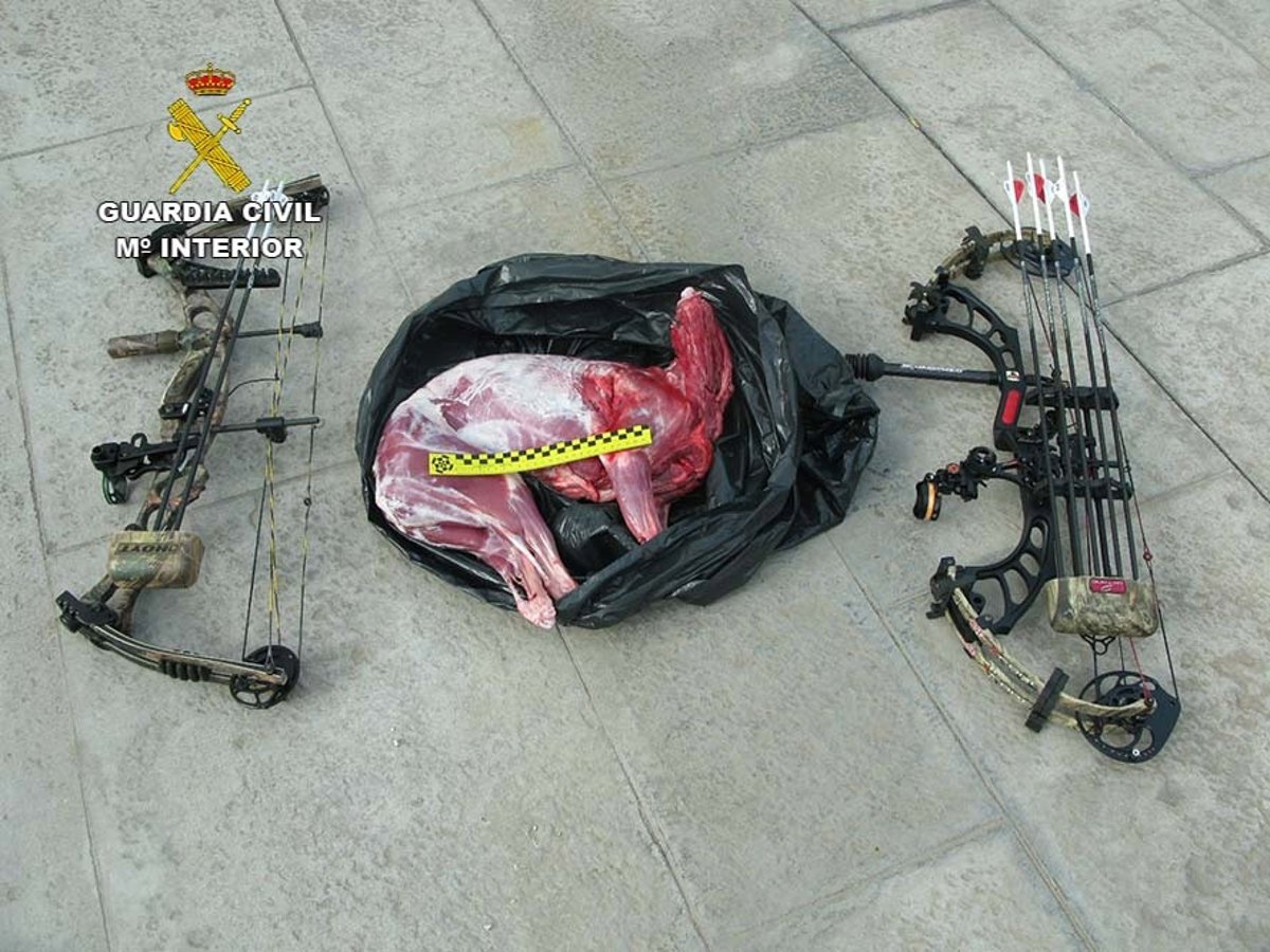 Sin embargo, se detuvieron a la orden de la patrulla, que comprobó que llevaban un arco cada uno y que en una de las mochilas tenían un cabrito despellejado y sin cabeza.