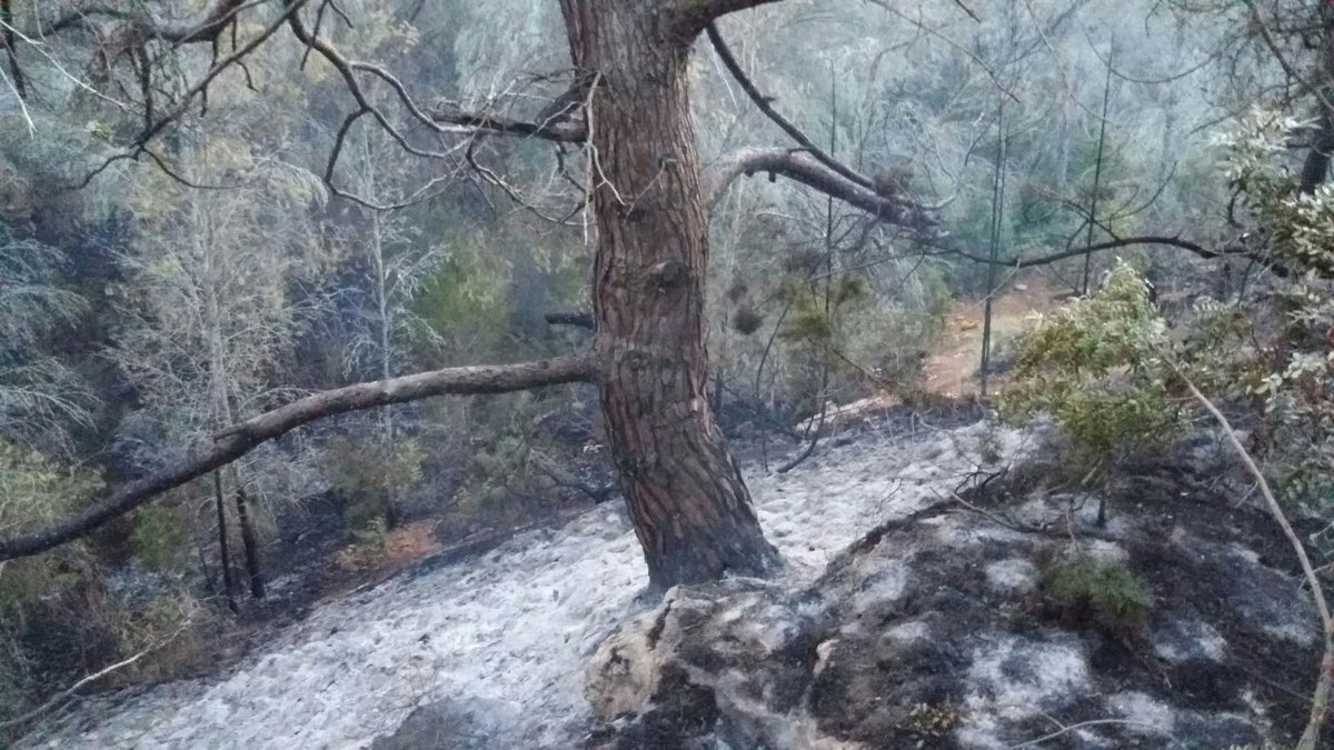El fuego ha afectado a 5,16 hectáreas de pinar. Dos autobombas, 17 brigadistas, 5 agentes de Medio Ambiente y dos técnicos siguen trabajando en la zona.