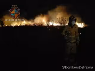 Según informan los Bomberos de Palma en su cuenta Twitter el fuego se declaró sobre las 23.00 horas y el fuerte viento ha dificultado las labores de extinción.
