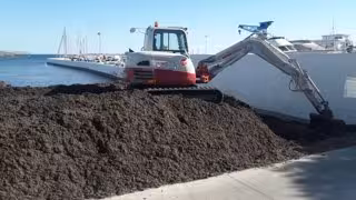 Durante diez días se han retirado 535 toneladas de hojas muertas de posidonia y se han realizado un total de 97 viajes de camiones para entregar estos restos vegetales a la policía y a tres fincas ganaderas de Son Ferriol y Sant Jordi, para su aprovechamiento en los establecimientos de ganado.