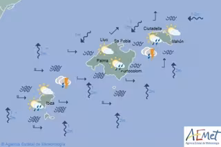 La Agencia Estatal de Meteorología (Aemet) pronostica para este jueves 24 de octubre en Baleares: intervalos nubosos con chubascos ocasionales que podrían ir acompañados de tormenta. Temperaturas con pocos cambios. Vientos del suroeste girando a norte y noroeste.