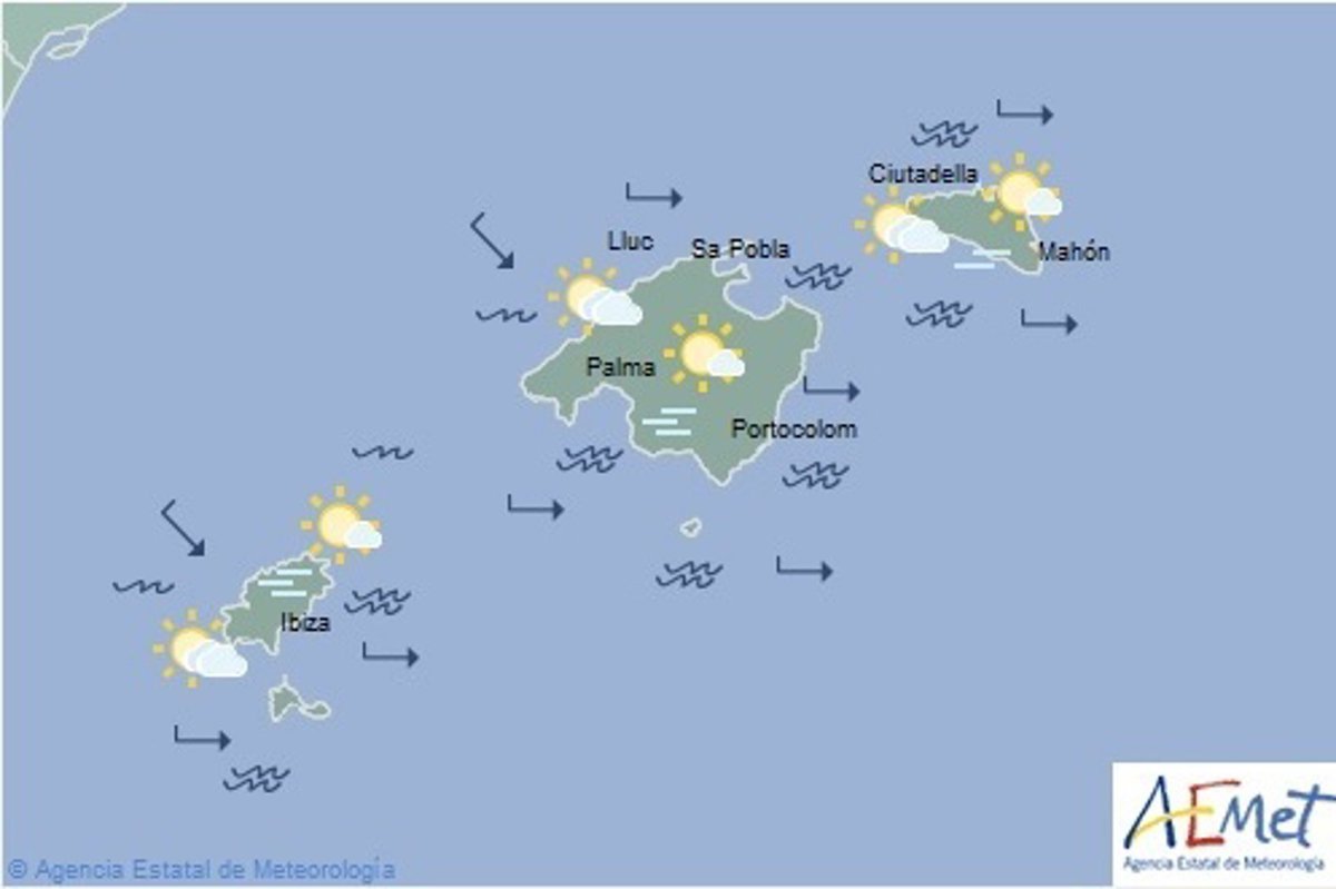 La Agencia Estatal de Meteorología (Aemet) pronostica para este miércoles 30 de octubre en Baleares: intervalos nubosos tendiendo a partir de la tarde a predominio de cielo poco nuboso con intervalos de nubes altas. Brumas y bancos de niebla matinales. Temperaturas con pocos cambios. Vientos flojos.