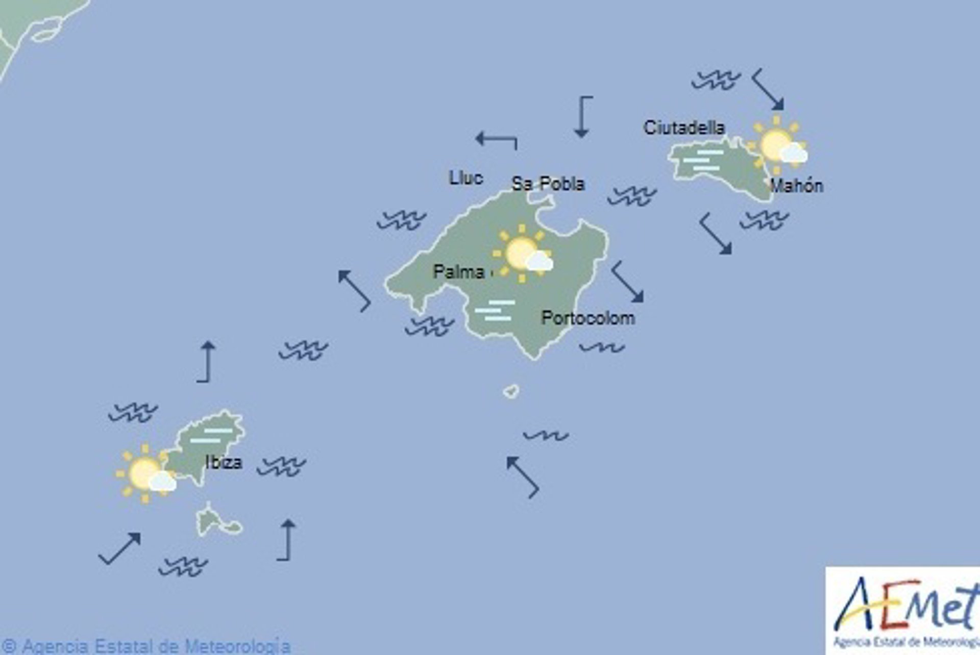 La Agencia Estatal de Meteorología (Aemet) pronostica para este lunes 30 de septiembre en Baleares: cielo poco nuboso con intervalos de nubes bajas en las primeras horas de la mañana. Brumas matinales sin descartar algún banco de niebla. Temperaturas con pocos cambios. Vientos de componente sur flojos con brisas costeras.