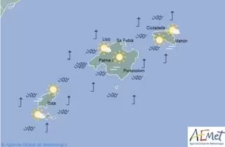 La Agencia Estatal de Meteorología (Aemet) pronostica para este viernes 9 de agosto, en Baleares: cielo poco nuboso o despejado. Brumas con algún banco de niebla matinal. Temperaturas nocturnas en ligero descenso y diurnas sin cambios, o en ascenso en el norte de Mallorca donde se pueden alcanzar los 39 grados. Vientos del sur en general flojos.
