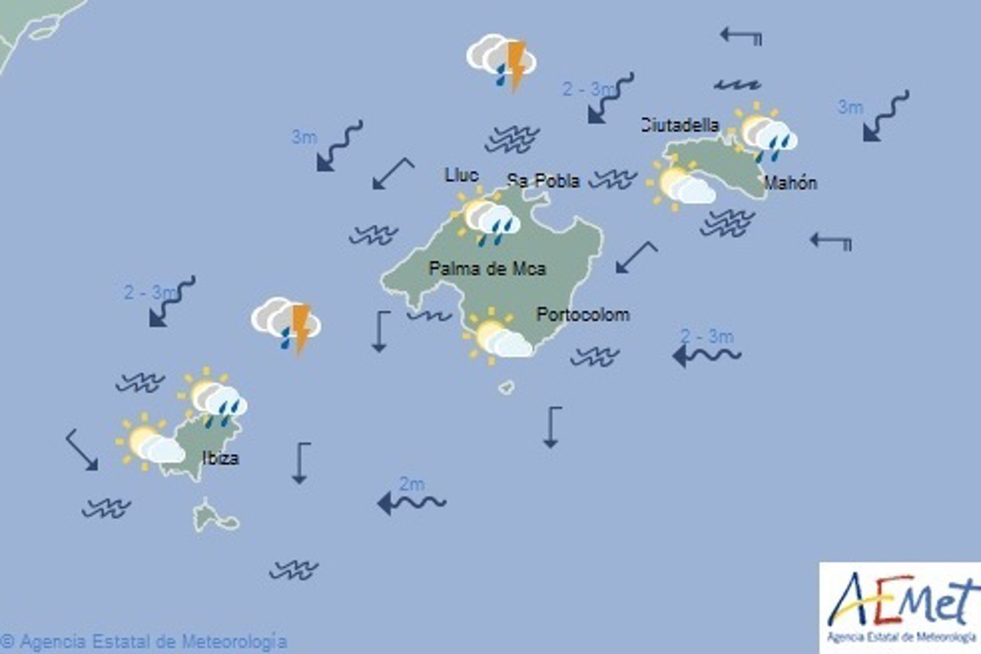 La Agencia Estatal de Meteorología (Aemet) pronostica para este jueves 5 de diciembre en Baleares: intervalos nubosos con chubascos ocasionales que podrían ser localmente fuertes e ir acompañados de tormenta, más probables en el norte de Mallorca. Temperaturas nocturnas en descenso y diurnas en ligero ascenso. Viento flojo, temporalmente vientos del este y nordeste.