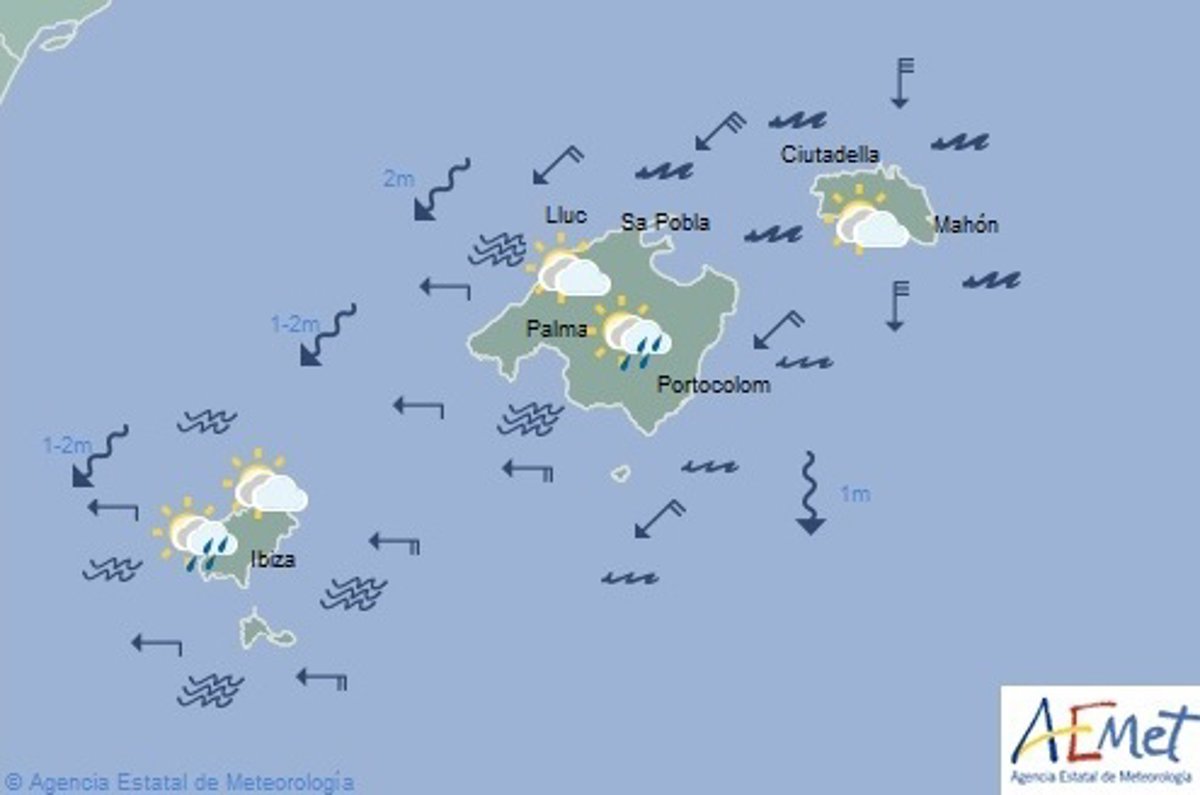 La Agencia Estatal de Meteorología (Aemet) pronostica para este viernes 6 de septiembre en Baleares: cielo nuboso, con probabilidad de algún chubasco ocasional y aislado, disminuyendo por la noche a poco nuboso. Temperaturas nocturnas con pocos cambios y diurnas en ligero descenso. En el nordeste, vientos del norte con intervalos de fuerte; en el resto de Mallorca, vientos del este y nordeste, en general flojos, con brisas costeras.