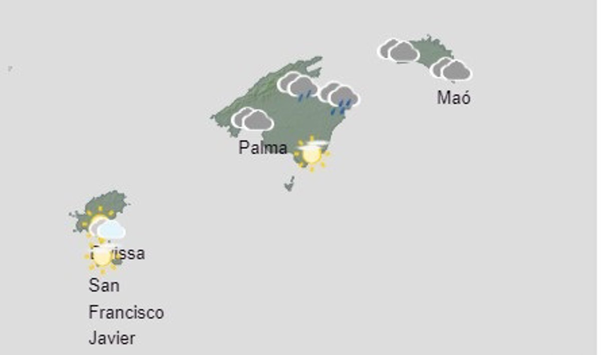 La Agencia Estatal de Meteorología (Aemet) pronostica para hoy domingo, 15 de octubre, en Baleares: cielo nuboso o cubierto con chubascos que pueden ser localmente fuertes e ir acompañados de tormenta y, en el norte de Mallorca, ser ocasionalmente muy fuertes, tendiendo a remitir en Pitiusas por la mañana y en el resto al final de la tarde. Temperaturas mínimas con pocos cambios o en ligero descenso y máximas en descenso localmente notable. Viento entre flojo y moderado, en Mallorca y Menorca del este y nordeste; en Ibiza y Formentera de componente norte.
