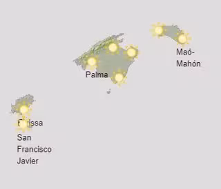 La Agencia Estatal de Meteorología (Aemet) pronostica para hoy domingo, 27 de diciembre, en Baleares: intervalos nubosos. Temperaturas nocturnas en descenso, localmente notable en Mallorca, y diurnas en ascenso. Heladas débiles locales en Mallorca. Viento del oeste y suroeste aumentando a fuerte durante la tarde con rachas de 70 km/h, en Menorca viento del norte de madrugada.