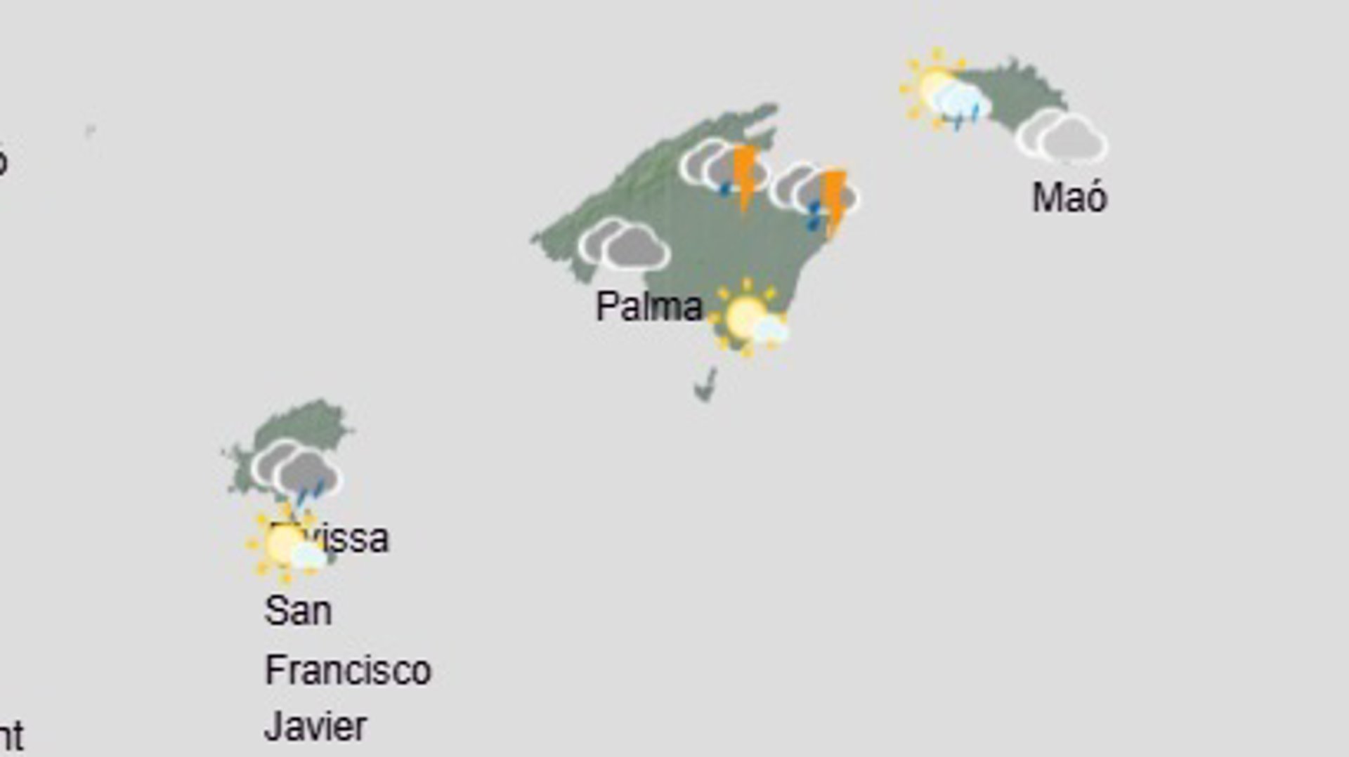 La Agencia Estatal de Meteorología (Aemet) prevé para este jueves en Baleares cielo nuboso o cubierto con lluvias y chubascos que podrían ser ocasionalmente fuertes e ir acompañados de tormenta y granizo, tendiendo por la mañana a intervalos nubosos con alguna precipitación ocasional hasta la tarde.