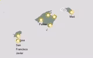 La Agencia Estatal de Meteorología (Aemet) prevé para este jueves intervalos nubosos sin descartar, preferentemente en Menorca y norte de Mallorca, alguna precipitación débil, ocasional y aislada, tendiendo durante la mañana a cielo poco nuboso o despejado.