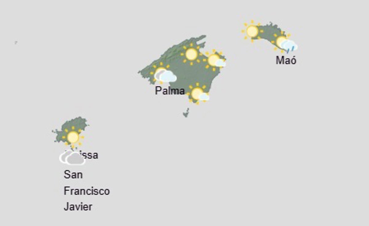 La Agencia Estatal de Meteorología (Aemet) prevé para este jueves cielo nuboso con chubascos y tormentas que pueden ser localmente fuertes o muy fuertes, preferentemente en zonas costeras, tendiendo por la mañana a predominar el cielo poco nuboso con alguna nube de evolución diurna que podría dejar algún chubasco ocasional y aislado en la mitad este de Mallorca.