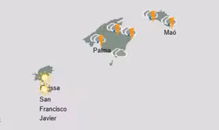 Temperaturas con pocos cambios o en descenso, alcanzándose las mínimas al final del día. Viento moderado del oeste con intervalos de fuerte y rachas que pueden alcanzar los 70 km/h, girando temporalmente a norte en Menorca y nordeste de Mallorca.