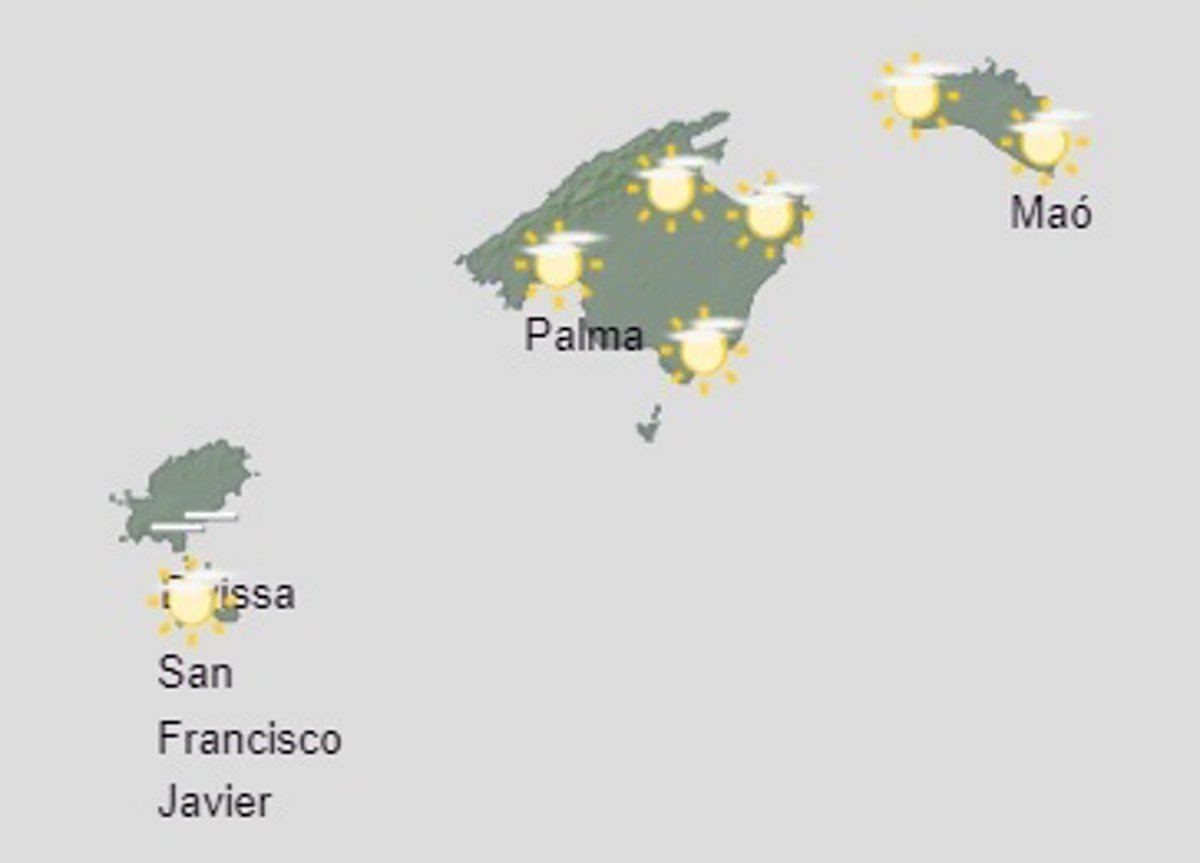 La Agencia Estatal de Meteorología (Aemet) pronostica para hoy jueves, 27 de abril, en Baleares: Cielo poco nuboso con intervalos de nubes altas. Brumas matinales. Temperaturas nocturnas con pocos cambios o en descenso y diurnas con pocos cambios o en ascenso. Viento del este y sureste en general flojo.