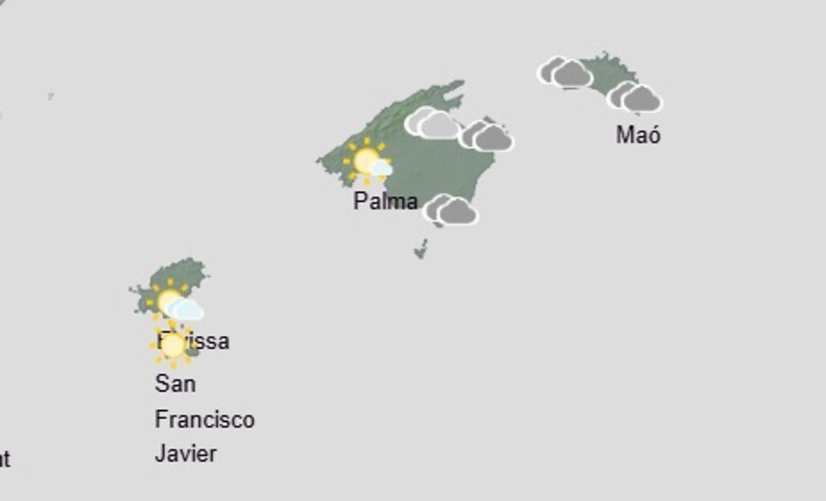 La Agencia Estatal de Meteorología (Aemet) prevé para este jueves en Mallorca y Menorca, cielo poco nuboso aumentando por la mañana a nuboso con chubascos dispersos y ocasionales que podrían ser localmente fuertes o muy fuertes e ir acompañados de tormenta y granizo; en Ibiza y Formentera, intervalos nubosos sin descartar algún chubasco ocasional.