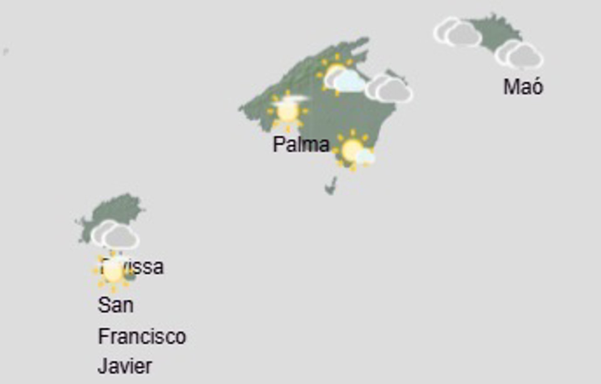 La Agencia Estatal de Meteorología (Aemet) prevé para este jueves en Baleares cielo nuboso tendiendo hacia la noche a predominar el cielo poco nuboso.