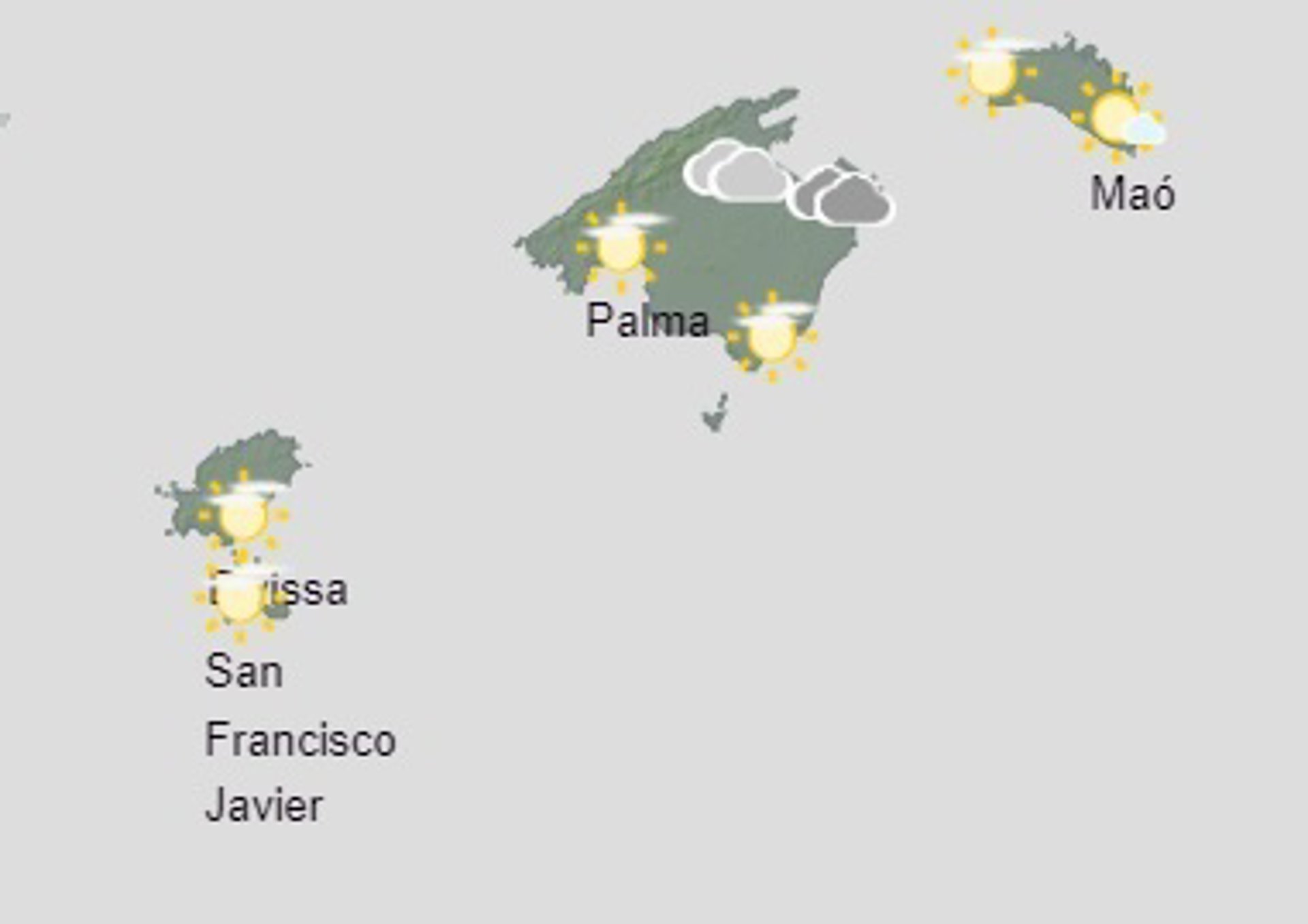 La Agencia Estatal de Meteorología (Aemet) prevé para este jueves, 8 de junio, en Baleares intervalos nubosos con predominio de nubes medias y altas sin descartar alguna precipitación débil y ocasional que puede ir acompañada de barro, más probable por la tarde-noche en Mallorca y en Ibiza.