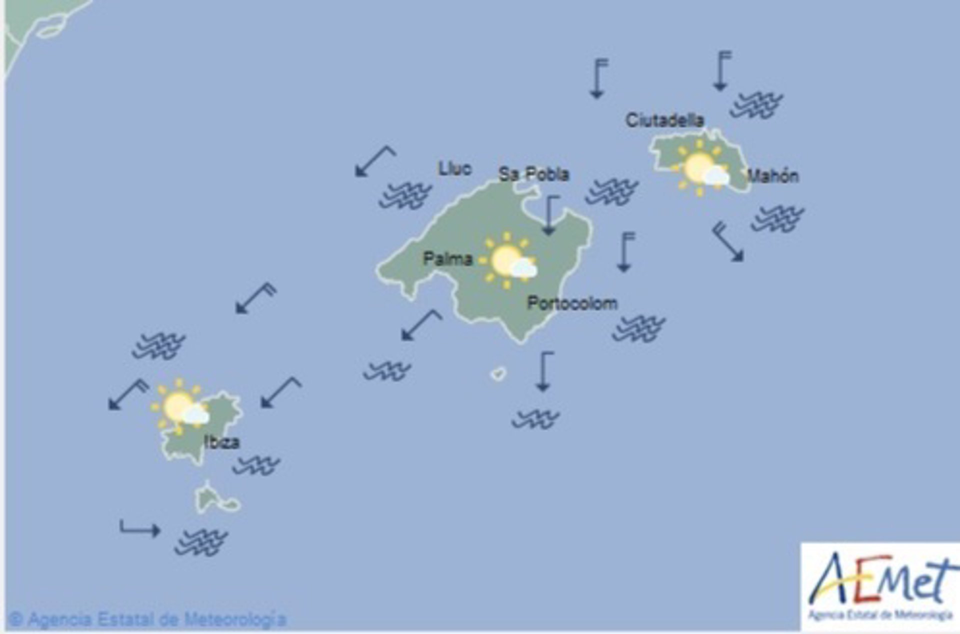 La Agencia Estatal de Meteorología (Aemet) pronostica para este lunes 10 de junio, en Baleares: predominio del cielo poco nuboso. Temperaturas nocturnas con pocos cambios y diurnas en descenso. Viento de componente norte, en general flojo y brisas.