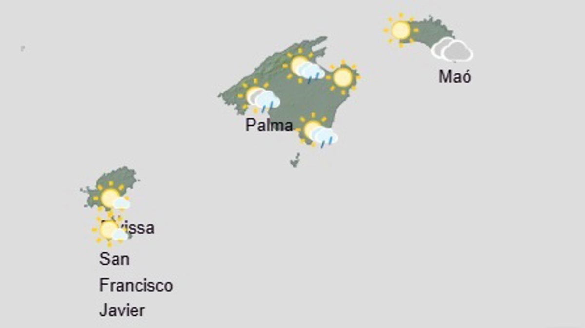 La Agencia Estatal de Meteorología (Aemet) prevé para este lunes predominio de cielo poco nuboso con nubes de evolución diurna y durante las horas centrales del día chubascos que podrían ser localmente fuertes e ir acompañados de tormenta, preferentemente en la mitad este de Mallorca y sin descartarlos en Menorca o Pitiusas pero de menor intensidad.